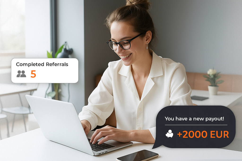 For every service paid for by a client through your referral, you receive a 10% commission. In your dashboard, you can track client statuses (from conversation to contract payment). At the beginning of the month, you issue an invoice and receive payment within 15 days.